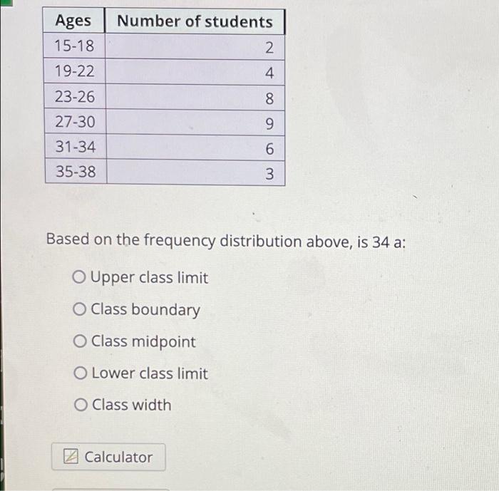 Solved Number Of Students Ages 15 18 2 19 22 4 23 26 8 27 30 Chegg Com